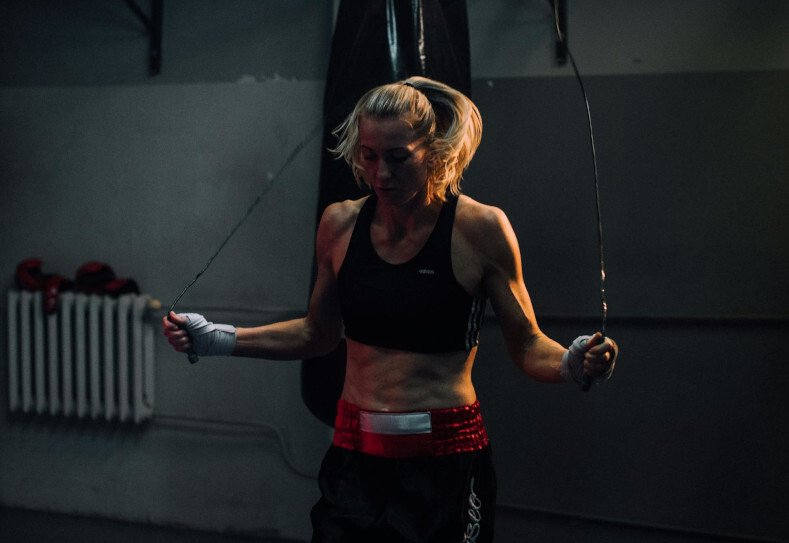 Jump rope training improves coordination and footwork. Start with basic bounces for 3-minute rounds, similar to boxing rounds. Take 1-minute rest periods between rounds.
